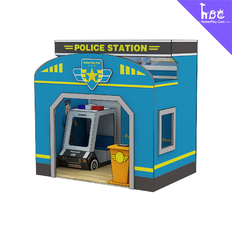 경찰서 미니 하우스는 아이들이 상상력 놀이를 통해 어른들의 세계를 탐험할 수 있도록 하는 매력적인 실내 놀이터 세트의 일부입니다. 이 인터랙티브 놀이 세트는 아이들이 재미있게 놀면서 신체적, 인지적, 사회적 기술을 개발하도록 돕습니다.