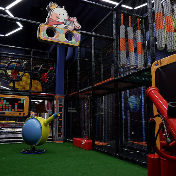 숲을 주제로 한 이 실내 어린이 놀이터에는 숲 방어 시스템의 스타일로 설계된 놀이 구조를 가진 주요 숲 캐릭터들이 있습니다.공간은 원시 숲 환경에서 영감을 얻은 주제 디자인 요소와 색상 스키마를 통합합니다.대화형 대포는 놀이 공간의 양쪽에 배치되어 있습니다. 대포 놀이와 통합된 LED 화면을 통해 아이들이 참여하도록 장려합니다.숲을 주제로 한 몰입적인 놀이 경험을 만드는 것.